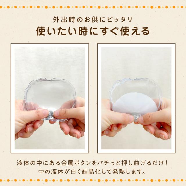 発熱方法: 内部の金属板を押して発熱(約5秒でぽかぽか)
