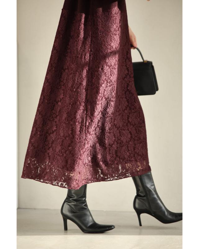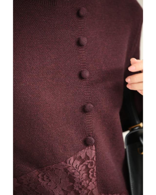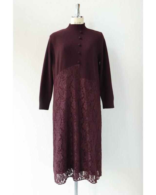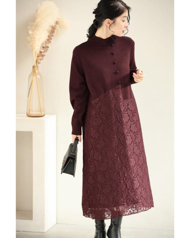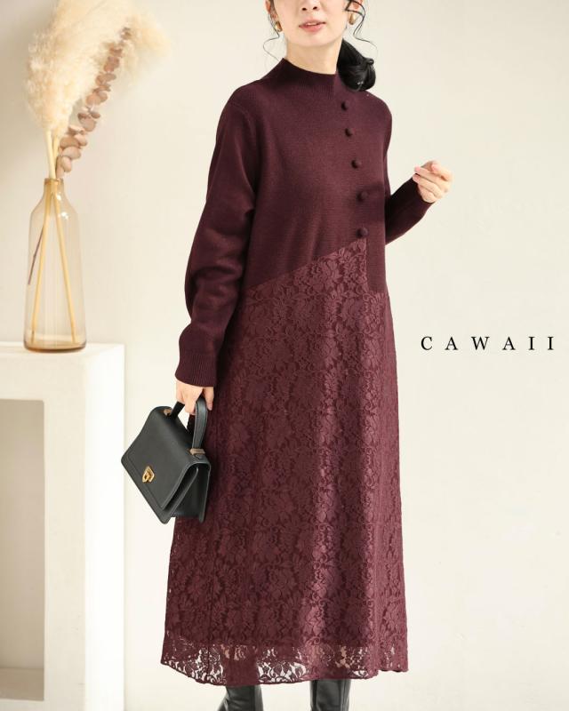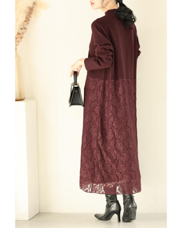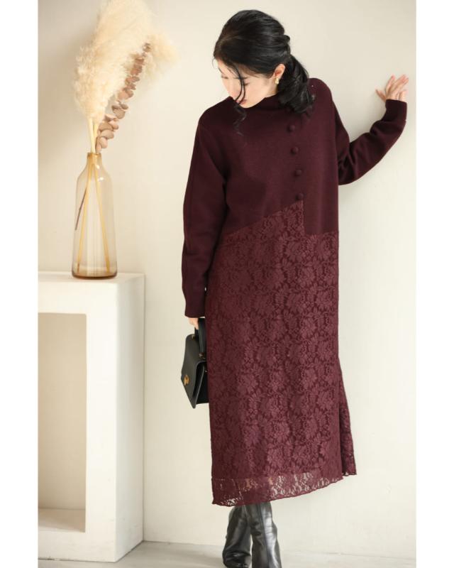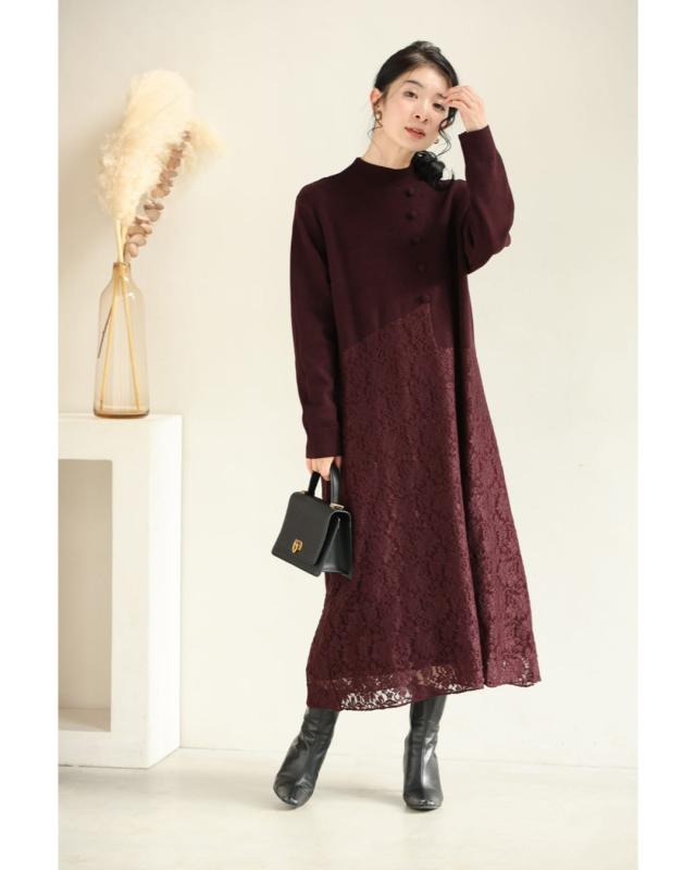 w61593ps 新作 新着 再入荷 CAWAII FRENCHPAVE フレンチパヴェ エレガント ベーシック カジュアル 可愛い かわいい カワイイ おしゃれ オシャレ お洒落 個性 個性的 定番 ベーシック 大人かわいい 大人可愛い 上品 女性らしい デザイン スタンダード ナチュラル きれいめ キレイめ シンプル フェミニン レディース レディースファッション 大人 ママ ミセス 30代 40代 50代 60代 深まる ボルドー レース 合わせ ニット ミディアム ワンピース 長袖 ロング袖 ボトルネック ハイネック スッキリ見え S M L 2L フリーサイズ フリー 小さめ 小さめサイズ小さい 小さいサイズ 低身長 痩せ ほっそり 小柄 細身 標準サイズ 大きめシルエット 大きい 大きめ ビッグシルエット ぽっちゃり F サイズ自由 秋 冬 秋服 秋物 冬服 冬物 体型カバー 楽ちん 楽チン ラクラク ストレッチ 伸びる 伸縮性 ボルドー ワインレッド 赤色 ワンカラー ワントーン レース服 日常着 普段着 日常使い おでかけ 旅行 女子会 食事会 デート 買い物 大人女子
