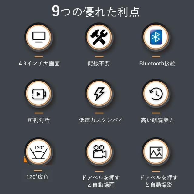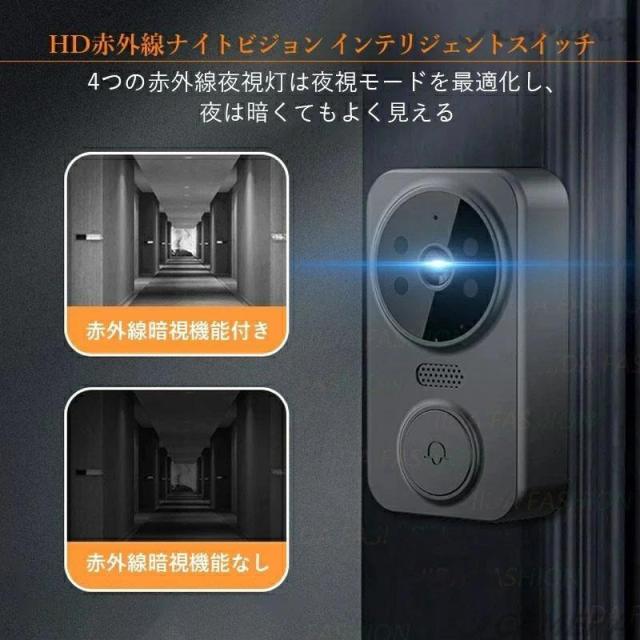 テレビドアホン インターホン カメラ付き 工事不要 【双方向通話/録画/暗視】ドアホン ワイヤレス 2.4GHz無線 玄関チャイム 爆買 USB充電 1000mAhバッテリー