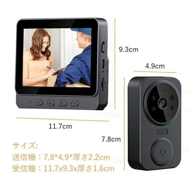 テレビドアホン インターホン カメラ付き 工事不要 ドアホン ワイヤレス 2.4GHz無線 玄関チャイム USB充電 1000mAhバッテリー