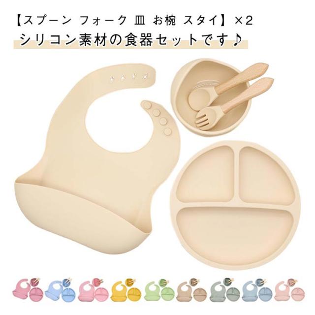 | 【スプーン フォーク 皿 お椀 スタイ】×2 シリコン素材の食器セットです♪ お子様にも安心して使える! 電子レンジ・食洗器対応です◎ シリコンだから、お手入れもラクチン♪ 出産祝いに人気のかわいいベビー食器セット、贈り物にも最適。♪ | |