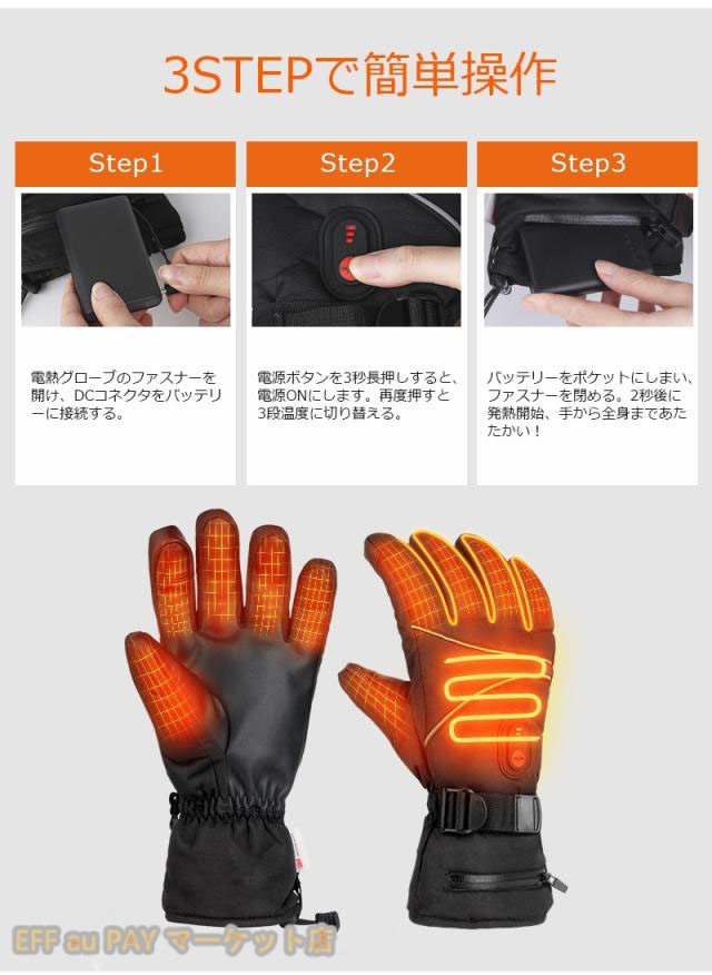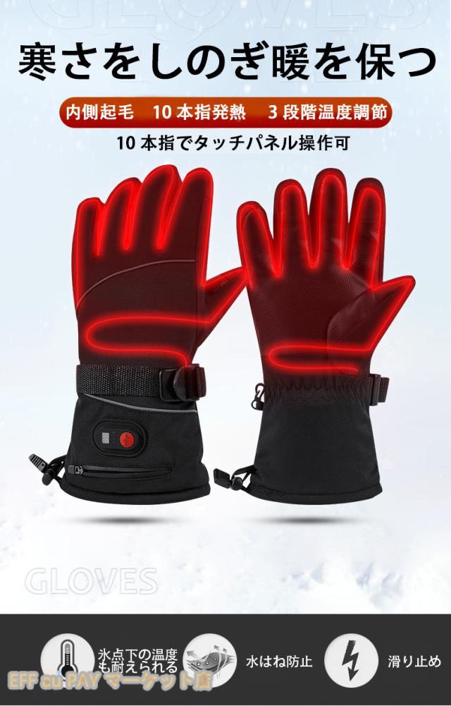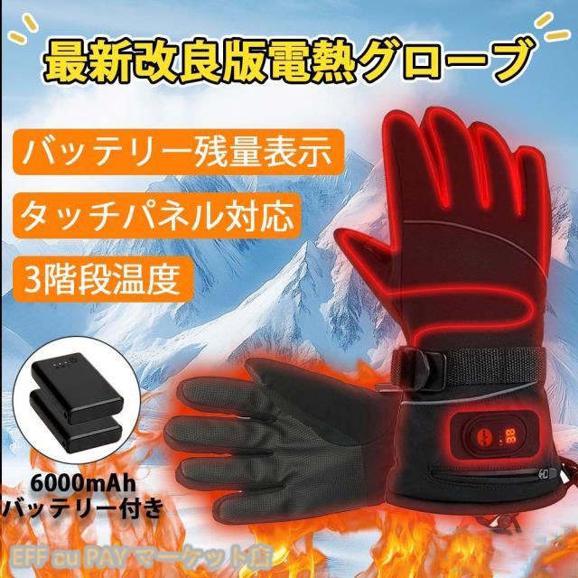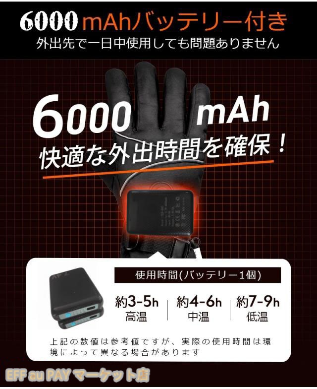 送料無料 電熱グローブ 電熱手袋 バイク用 電熱グローブ ヒーター ヒーターグローブ 滑り止め スマホ対応 中綿素材 3段階温度調整 6000mAhバッテリー付き 保温 暖かい 防寒 防水 防風 屋外作業 男女兼用