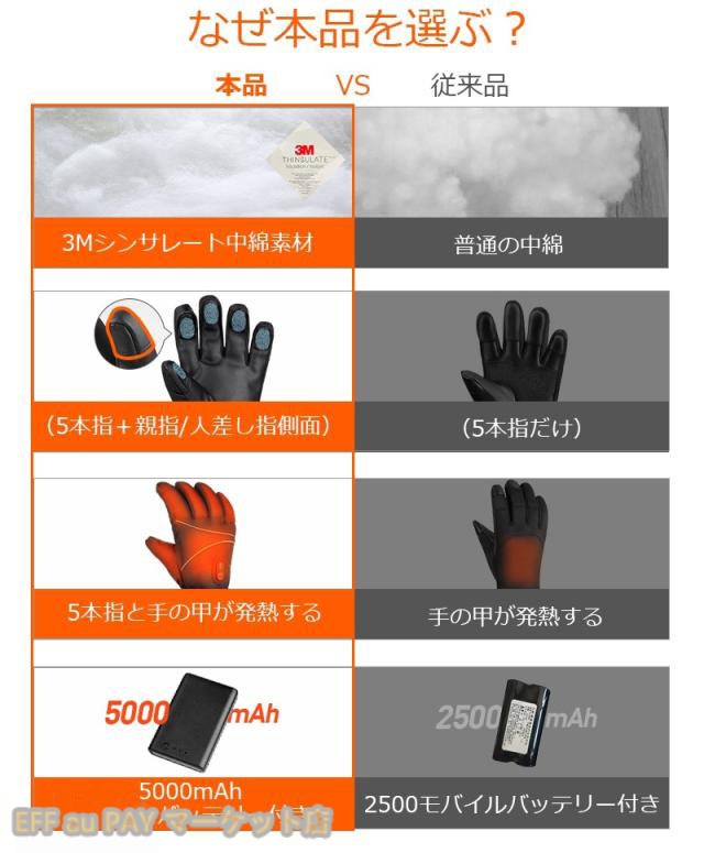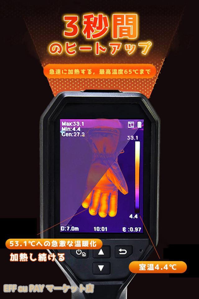 ・グローブ内部に張り巡らせたPVC製電熱線が発熱して暖かい!最大約70度まで発熱して冬ライドをサポート