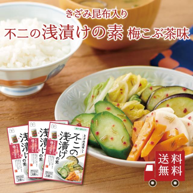 【送料無料】不二の浅漬けの素 梅こぶ茶味 3個セット きざみ昆布入り 混ぜて揉むだけ 粉末タイプ 個包装 浅漬けの素 時短 簡単 便利 昆布 出汁 漬物 漬け物 調味料 あと一品に 箸休めに 調味料 メール便 送料無料