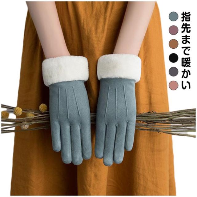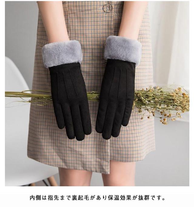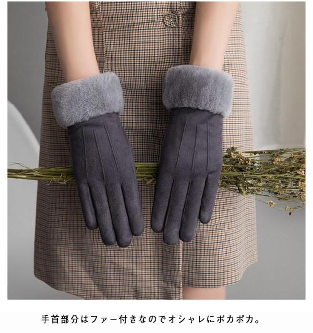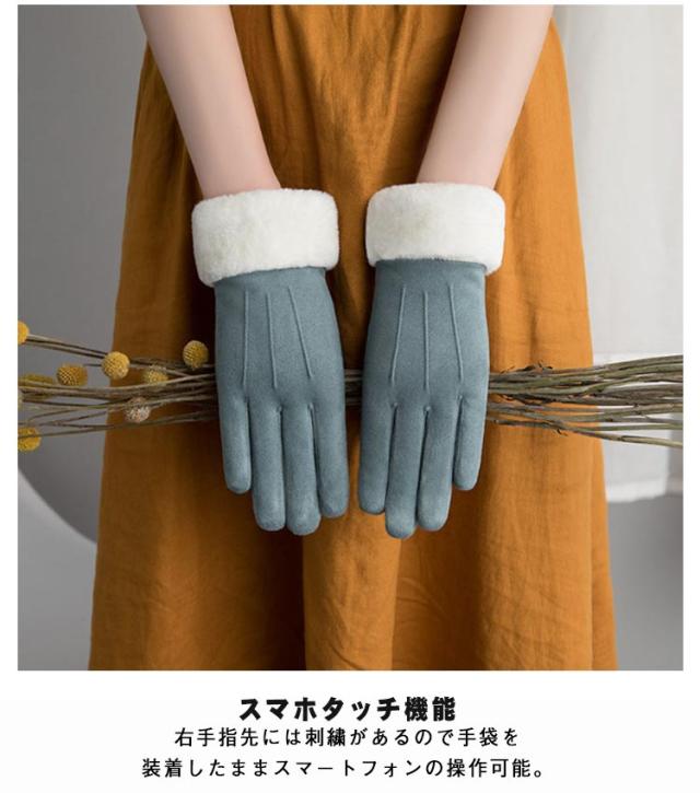 暖かい 裏起毛 手ぶくろ 防寒 スマホ手袋 5本指 手首ファー付 冬 寒さ対策 おしゃれ かわいい タブレット 秋 タッチパネル対応 防風 保温 レディース 手袋 ボア 手首 人差し指 プレゼント ギフト 誕生日 クリスマス