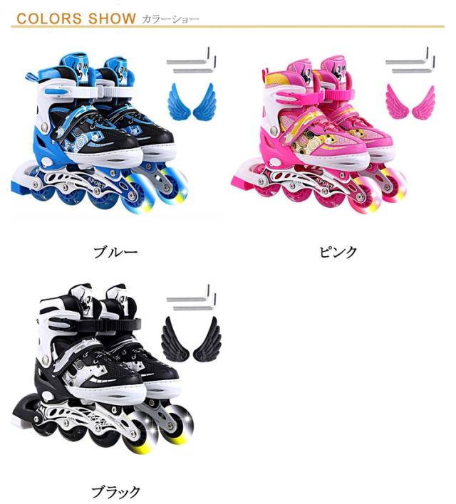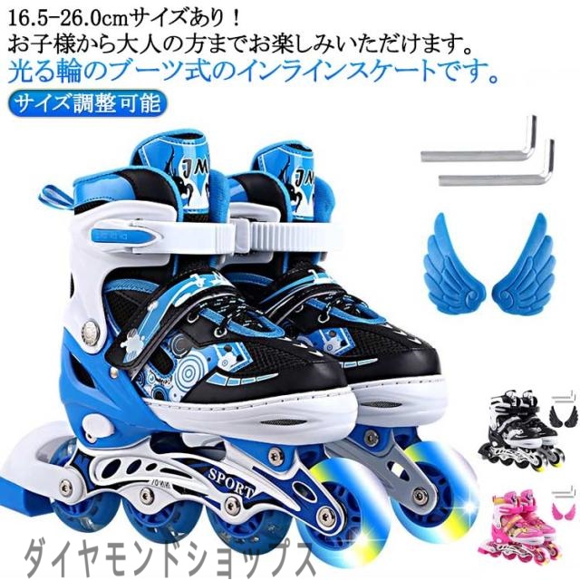 インラインスケート 18.0-26.0cm スポーツ ジュニア サイズ調整可能 大人 キッズ 中学生 光る ローラースケート シューズ スポーツ用品 インラインスケート 小学生 子供 男の子 女の子 1列 運動 アウトドア おしゃれ ブラック ブルー ピンク ローラー ローラーブレード