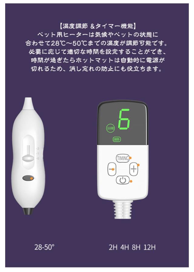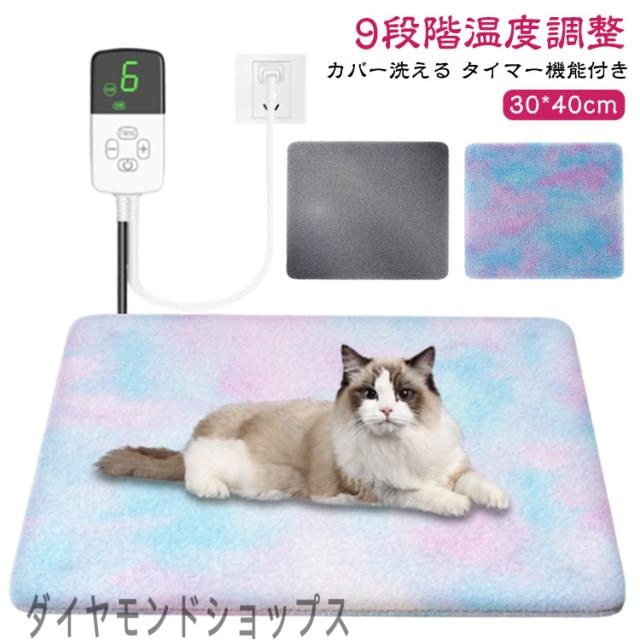 | サイズについての説明 | 【タイマー】9段階 【加熱温度】28℃~50℃ 【サイズ】30*40cm 【特徴】タイマー機能付き, お手入れ簡単, 温度調節, ペット用暖房器具 【お手入れ方法】カバーは洗濯機洗い可能 |