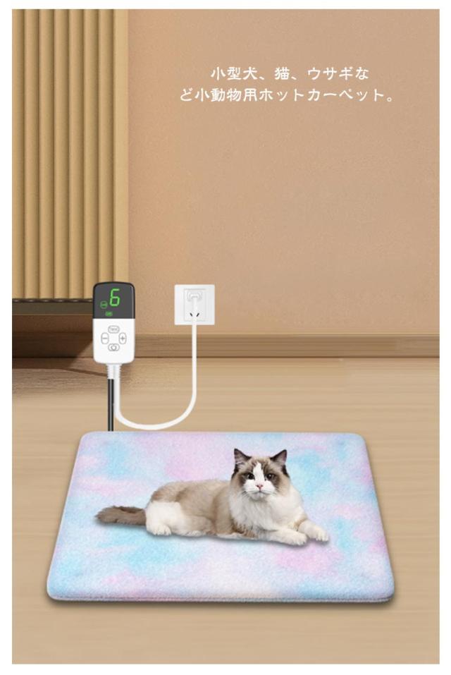 | 小型犬、猫、ウサギなど小動物用ホットカーペット。【30*40cm】【9段階温度調整】【カバー洗える】【タイマー機能付き】 【ご使用の目安】チワワなど小型犬、猫、ウサギなど小動物。実際にお飼いになっているペットの大きさで、判断・ご購入お願いいたします。 【防水、難燃保護、認証済み電熱線】7層構造デザイン 過熱保護回路付去、電熱線均等仁分散机、 均一に加熱することができます。;難燃性コットンを内蔵し、均一加熱を実現し、リスクもより効果的に低減します。 【感電防止・耐噛み】保護管付きコードはある程度の感電防止保護があります。ただし、長い間噛むと保護管が破損する場合があります。 【ふわふわ生地・お手入れ簡単】高品質なフランネル素材を採用し、カバーはふかふかな手触りが心地良く、取り外し可能で、いつでも洗濯機で丸洗いできます。 【温度調節 &タイマー機能】ペット用ヒーターは気候やペットの状態に合わせて28℃?50℃までの温度が調節可能です。 必要に応じて適切な時間を設定することができ、時間が過ぎたらホットマットは自動的に電源が切れるため、消し忘れの防止にも役立ちます。 | |