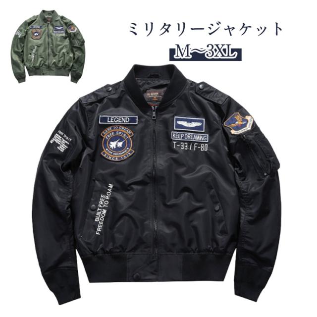ミリタリージャケット 秋 アウター 秋 メンズ おしゃれ 春服 フライトジャケット 長袖 ブルゾン M?3XL ワッペン コート ミリタリージャケット 内側ポッケト付き 刺繍 冬 バイク ジャンパー 大きいサイズあり バイクジャケット ブラック ネイビー カーキグリーン
