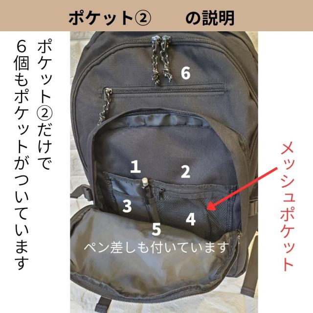 使い勝手の良いポケットがたくさんで通学バックとしては最適です。