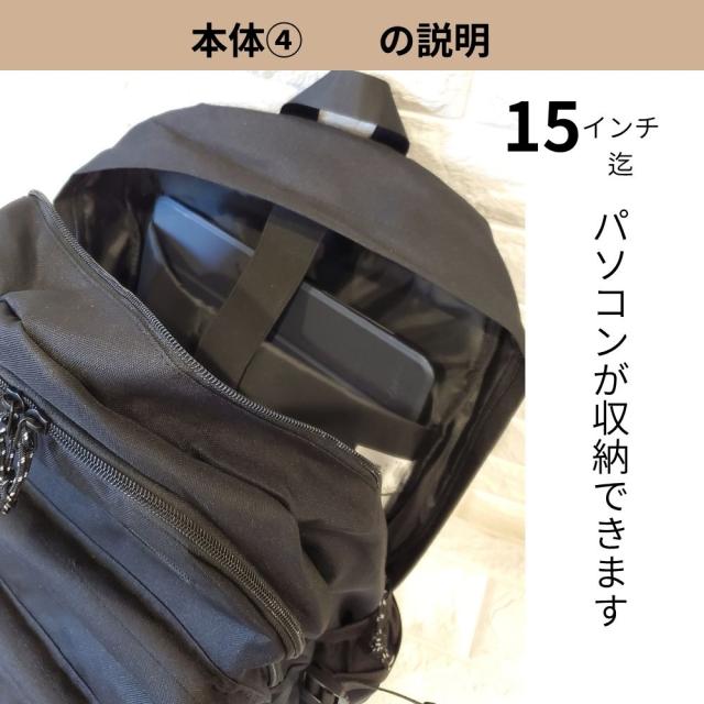 ●15.6インチまでのノートパソコンを収納できるパットのついたポケットもあります。