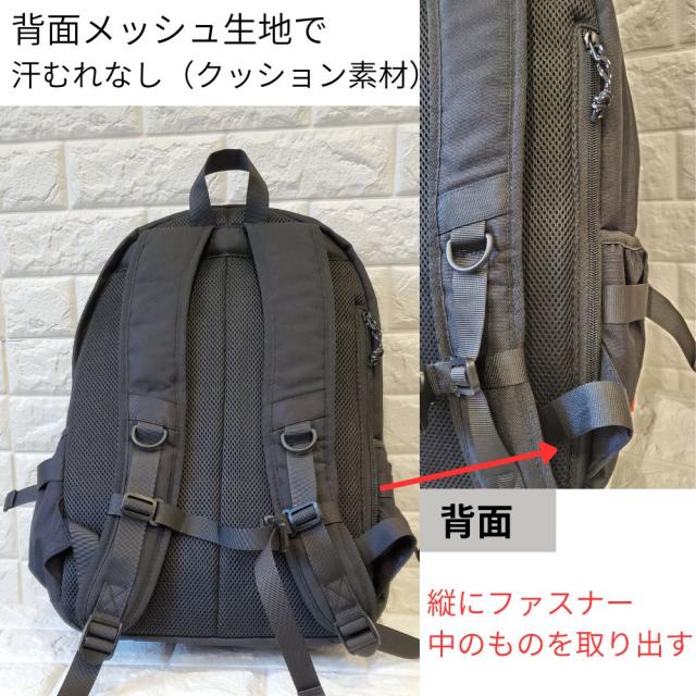 ●背面にファスナーがついていて背負ったまま中のものが取り出し可能です。