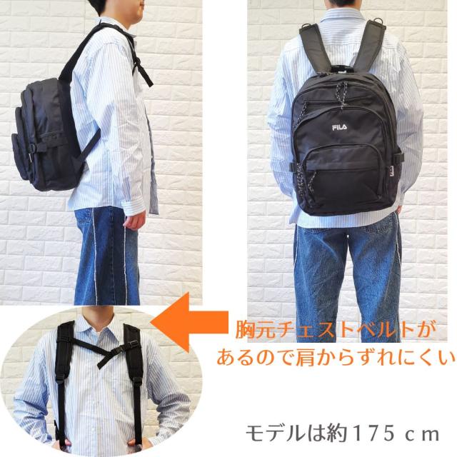 FILA リュック 28L 通学リュック スクールリュック スクールバック バッグ リュック 大容量 フィラ 2層 バックパック 通学 学生 用 デイバック 女子 高校生 女子高生 ブラック 通勤 撥水 人気 男子