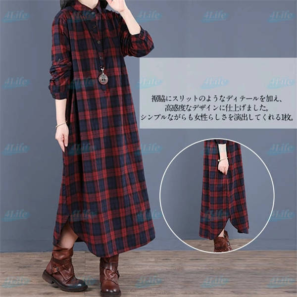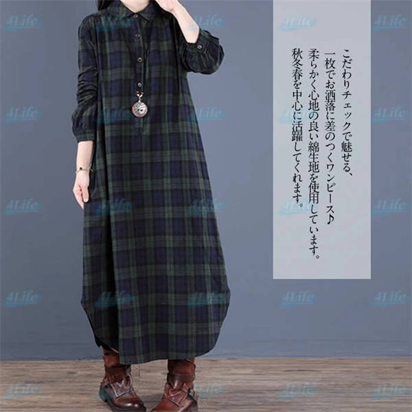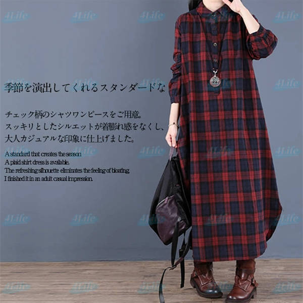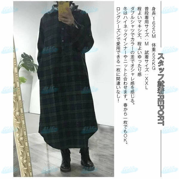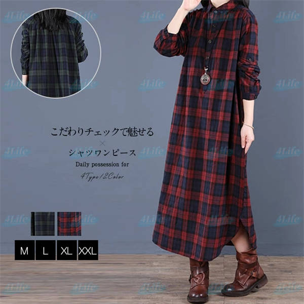 ロングシャツワンピース レディース シャツワンピース チェック ロング ワンピース 秋冬 チェック柄シャツ 長袖 マキシ丈 ライトアウター ゆったり 着痩せ 春 秋 冬 シンプル マキシワンピース 体型カバー