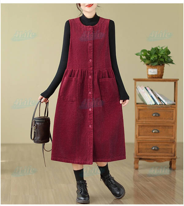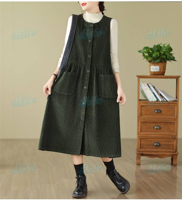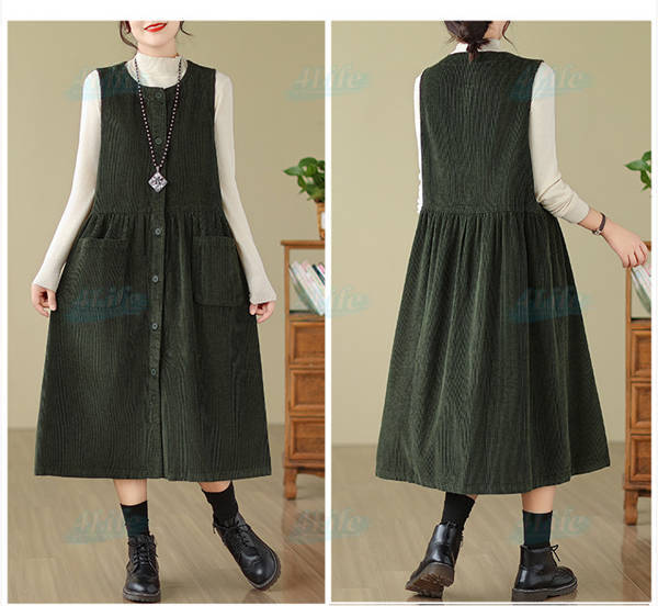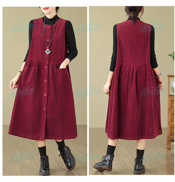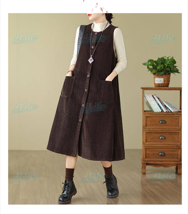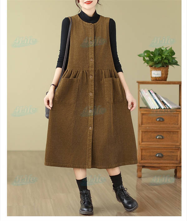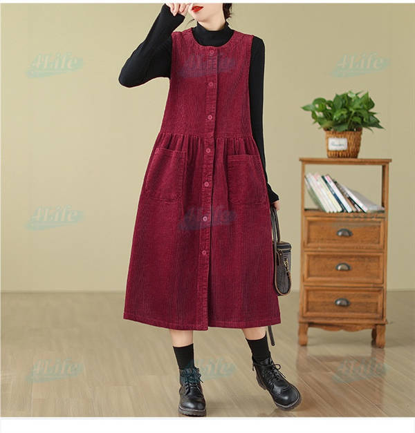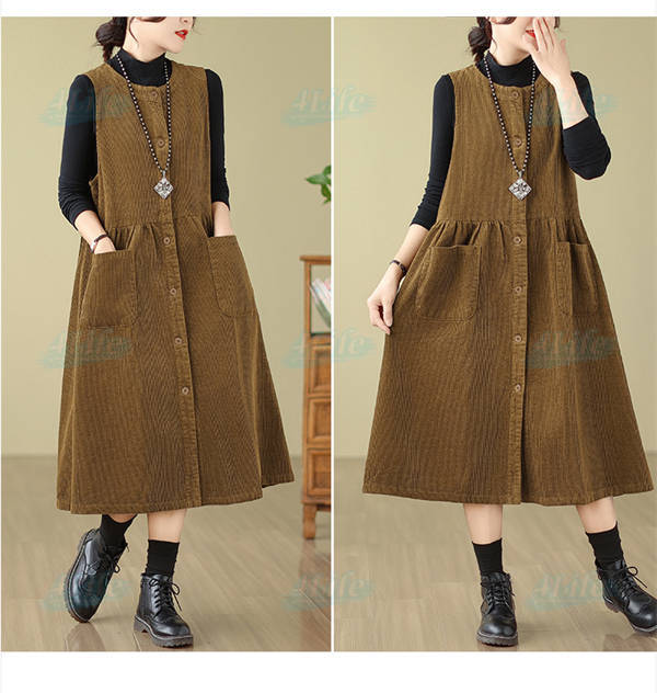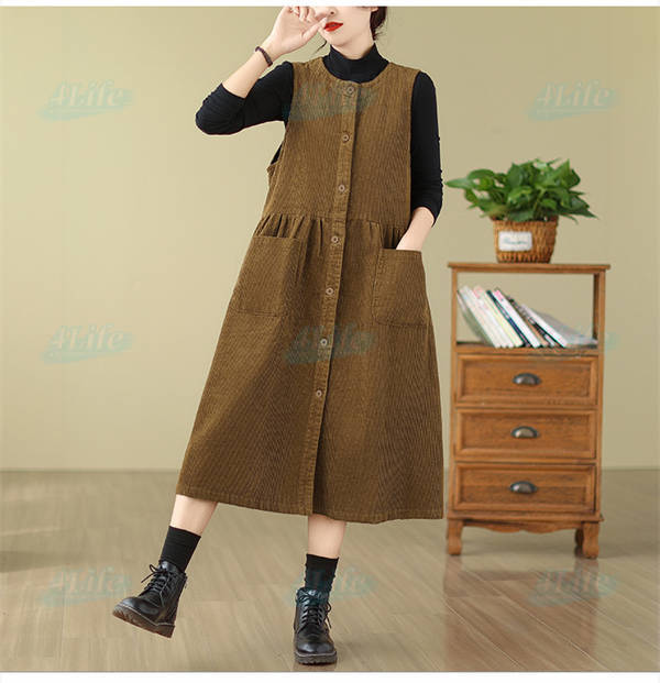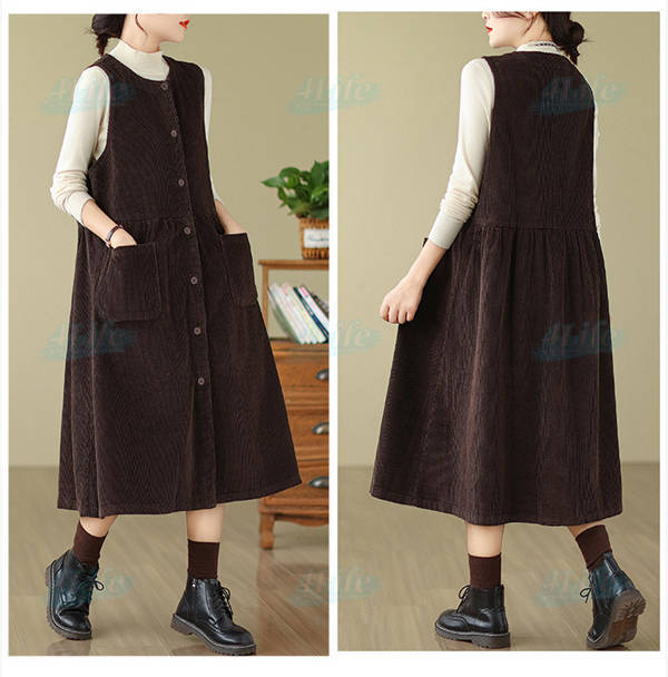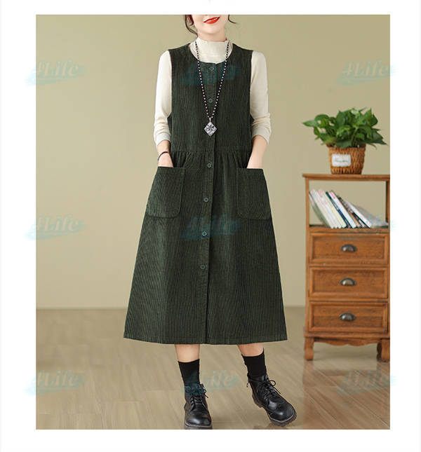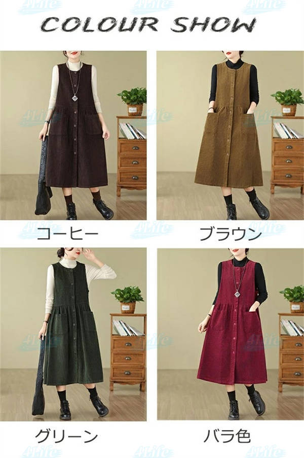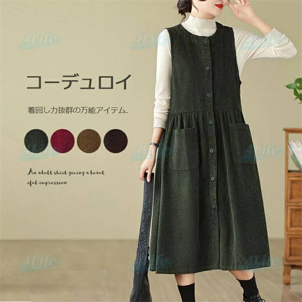 ジャンパースカート ロングワンピース レディース 秋冬 コーデュロイ ワンピース ロング きれいめ ミモレ丈 サロペット 冬 aラインワンピース 大きいサイズ ノースリーブ ゆったり ポケット付き 厚手 カジュアル ルームウェア リラックス
