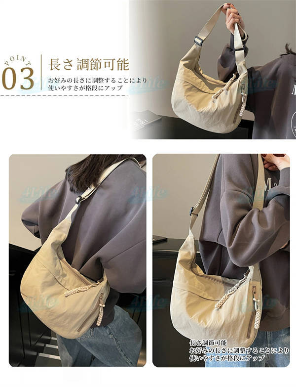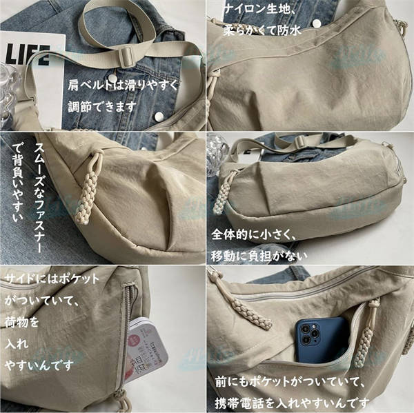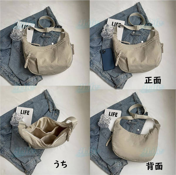 ショルダーバッグ レディース 斜めがけ 大人 軽量 ナイロン 小さめ メッセンジャーバッグ 大容量 b5 三日月型 韓国 女性 カバン バッグ 旅行 おしゃれ しっかり ファスナー付き 撥水 ポケット多い サブバッグ 修学旅行 ギフト 40代 30代