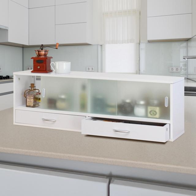 両側から使える!引き戸式キッチンカウンター上収納ラック(幅90cm)