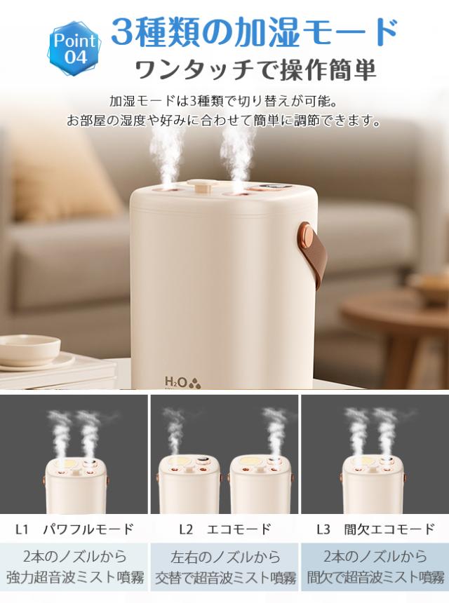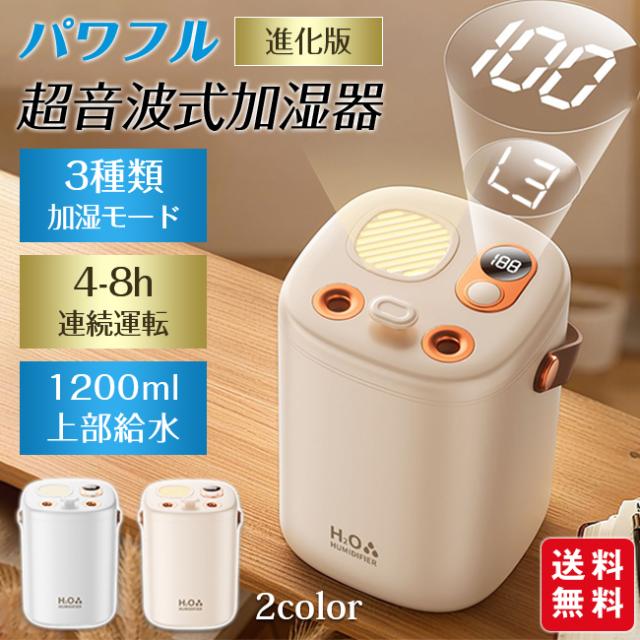 【クーポン配布中!】超音波加湿器 ダブルノズル ナノミスト 1.2L大容量 空気清浄 アロマ LEDライト 3種類加湿モード 長時間運転 乾燥 花粉対策 上部給水式 type-c充電式 卓上 省エネ 新生活 オフィス 寝室 静音 コードレス お手入れ簡単