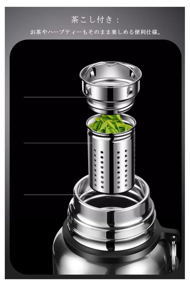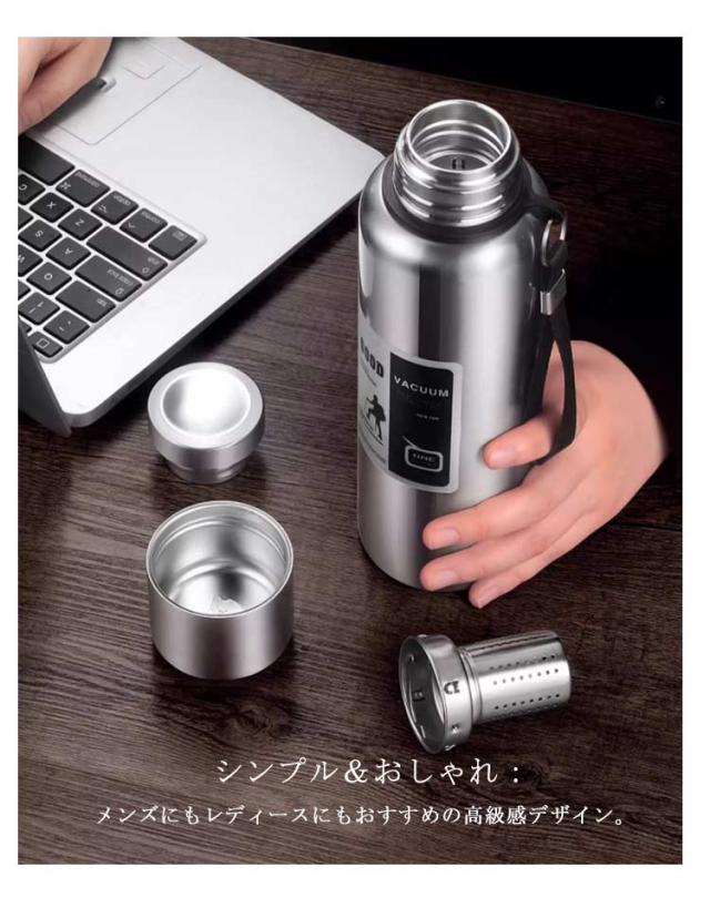 | 高品質316ステンレス製 真空断熱水筒 【1500ml 2000ml】 アウトドアから日常使いまで幅広く活躍する、大人におすすめのおしゃれな水筒。 高品質316ステンレス:錆びにくく耐久性抜群。飲み物の風味を損なわず、安心して長く使える。 真空断熱構造:優れた保温・保冷力で、熱い飲み物は長時間あったか、冷たいドリンクはキンキンに冷たいまま。 容量600?1000ml:小学生から大人、スポーツや通勤、アウトドアにも最適なサイズ。 スリムデザイン&持ち運び便利:バッグにすっきり収まり、持ち運びやすい。 コップ付き:オフィスやアウトドアでも衛生的にシェア可能。 茶こし付き:お茶やハーブティーもそのまま楽しめる便利仕様。 シンプル&おしゃれ:メンズにもレディースにもおすすめの高級感デザイン。 毎日の水分補給を快適にサポート。 通勤・通学・アウトドア・スポーツ、どんなシーンにもフィットする万能水筒です。 | |