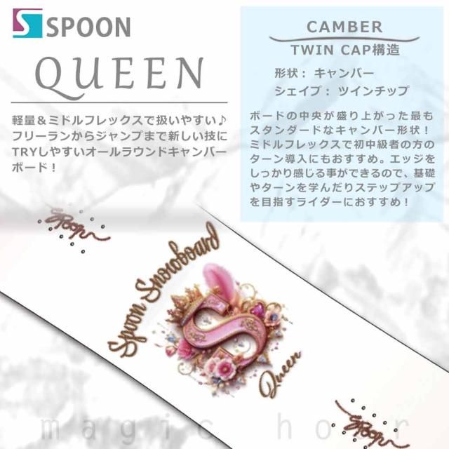 ◆ SPOON スプーン スノーボード 板 ビンディング レディース 3点 セット QUEEN クイーン イージーキャンバーボード ◆