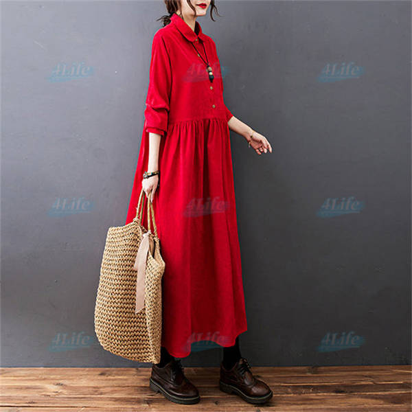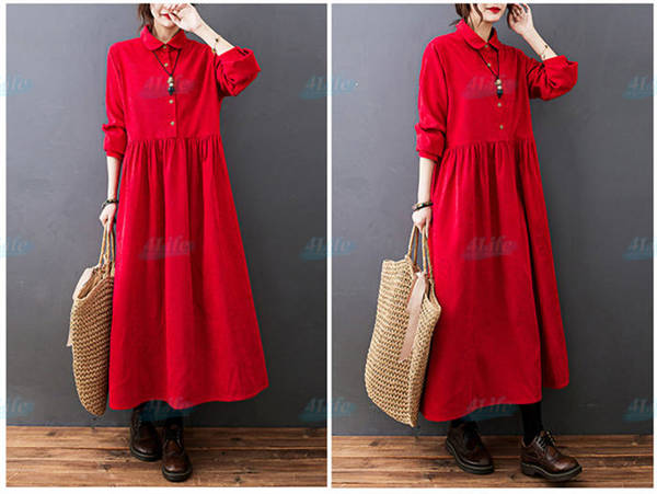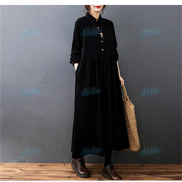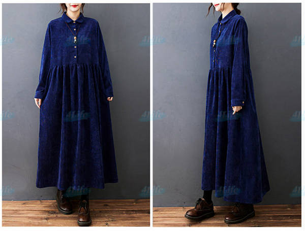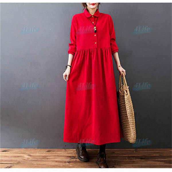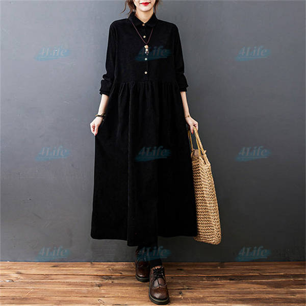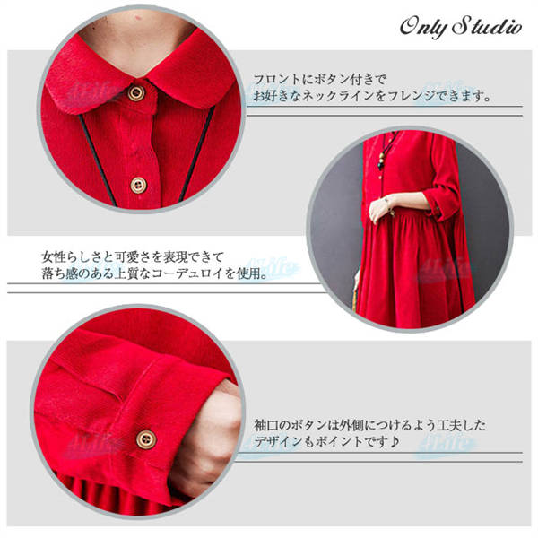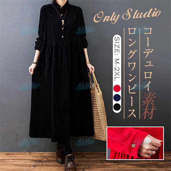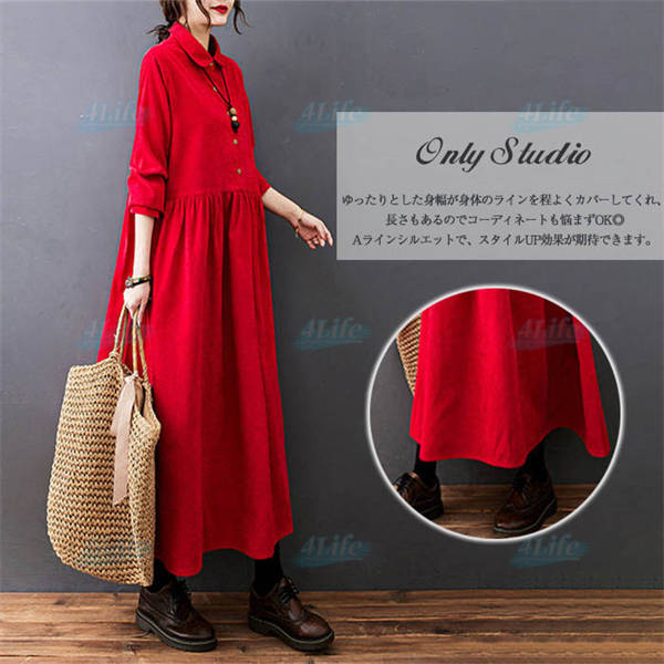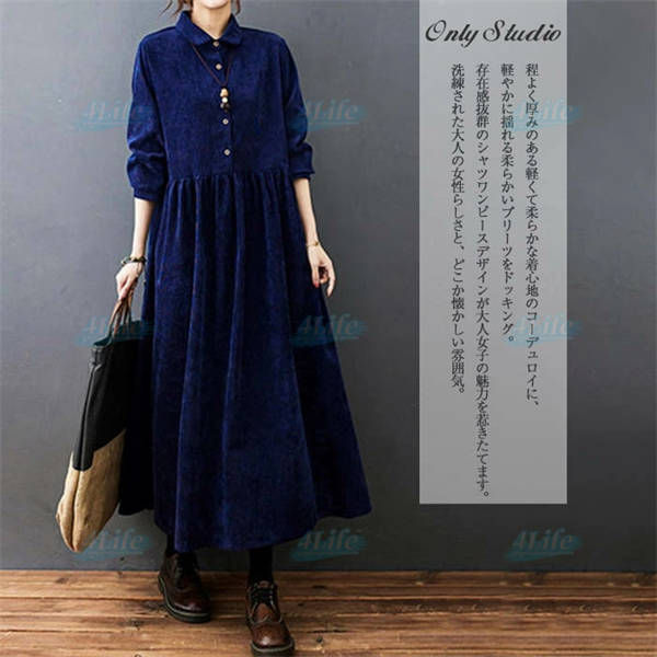 ワンピース ロングワンピース コーデュロイ シャツワンピ レディース ロング丈 マキシ丈 aライン 長袖 無地 ゆったり おしゃれ 体型カバー シンプル 着痩せ 大きいサイズ 秋冬 カジュアル 30代 40代 50代