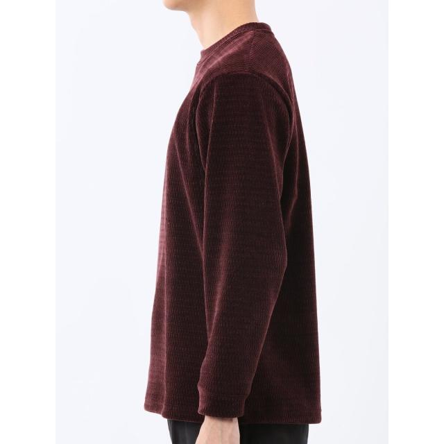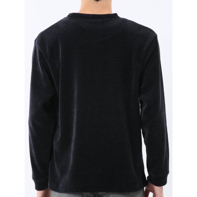 シンプル過ぎない存在感のあるクルーネックの長袖Tシャツです。無地とは一線を画するジャガード柄で、着映えするルックスに仕上げています。一枚で着るのはもちろん、ジャケットやコート、ダウンベストのインナーとしても便利なアイテムです。