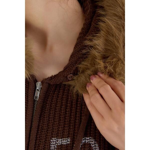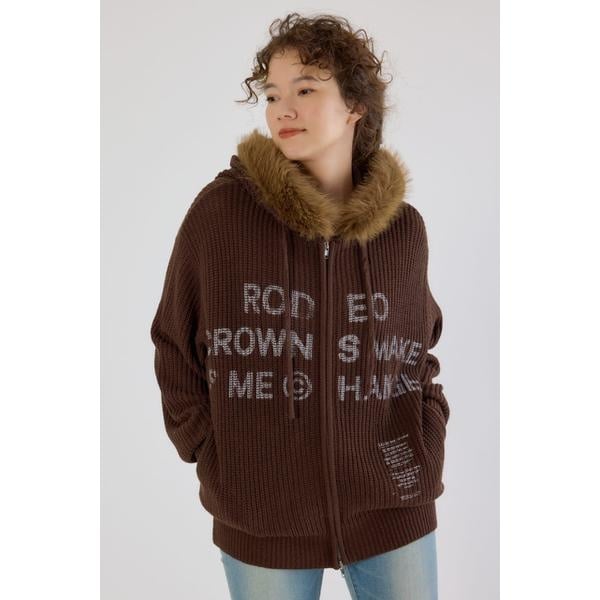 ■ポイントふわふわファーのフードが付き、デザインのアクセントに。顔まわりを女性らしく華やかにみせてくれる秋冬モードにぴったりの1枚。■ディテールファーは取り外し可能です。フロントのプリントデザインがカジュアル感をプラスしてくれます。■スタイリングワイドデニムやカーゴパンツでストリートスタイルや、スカートでフェミニンに合わせるのもおすすめです。■生地※手洗い可能商品※ONE&ONLY札付き素材の特性上、ピリングなどが発生した場合は、はさみなどできれいにカットしてください。柔らかいミドルゲージのニット商品ですので、ハンガー掛けの際に全体的にサイズが伸びます。こまめにハンガーから外すなどご注意下さい。プリントの風合いやカラー、位置には個体差がありますが、二次加工の特性によるものです。プリント部分を重ねると、くっつきや色移りの原因となる場合がありますのでご注意ください。また、プリント商品のため、着用や洗濯の繰り返しにより白化することがあります。■透け感:なし■裏 地:なし■伸縮性:ややあり■光沢感:なし[注意事項]※画像の商品はサンプルです。実際の商品と仕様、加工が若干異なる場合があります。※画像の商品は光の照射や角度、お使いのモニター環境により、実物と色味が異なる場合がございます。※着用、お取り扱いの際は、アテンションタグをご確認ください。