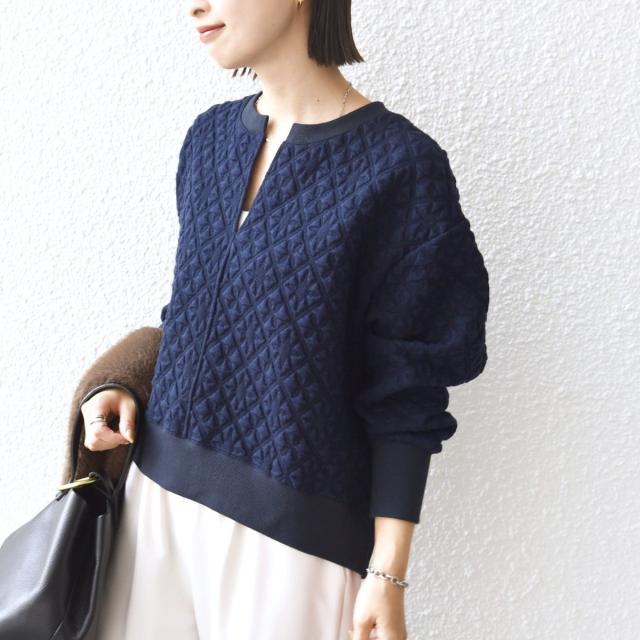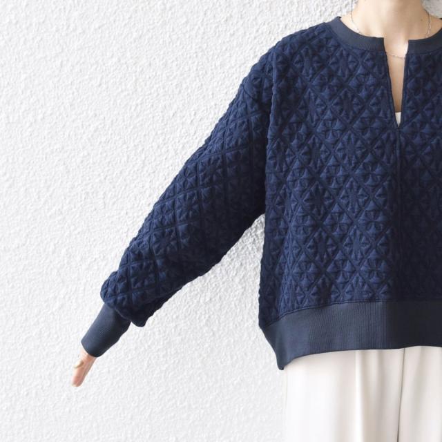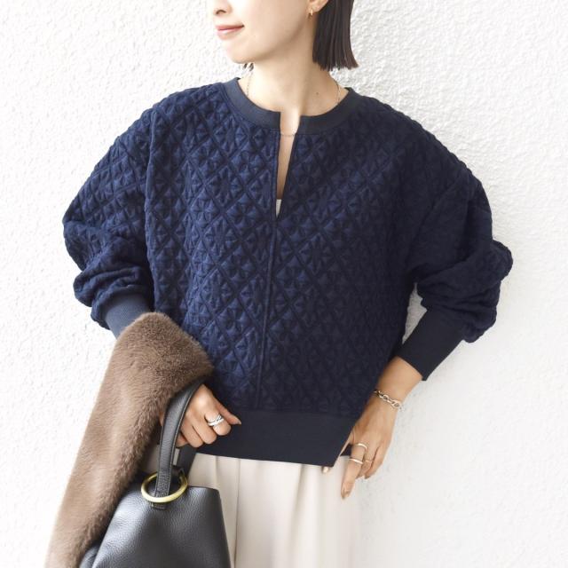 表面感のあるキルティングジャカード生地が可愛いプルオーバー。