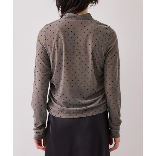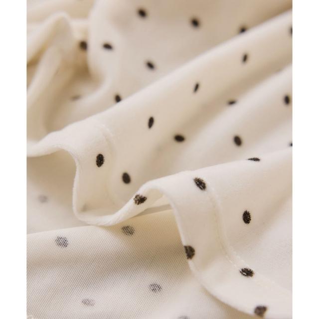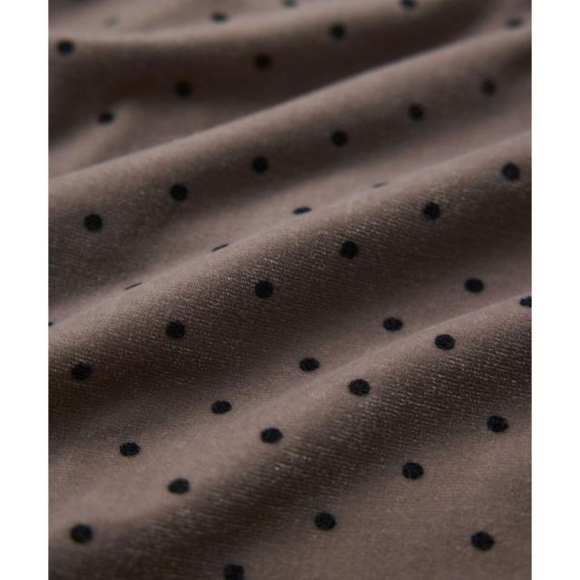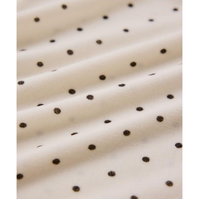 柔らかいタッチのベロアカットソー素材にドットプリントを施しています。