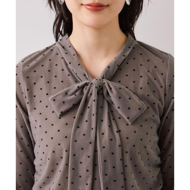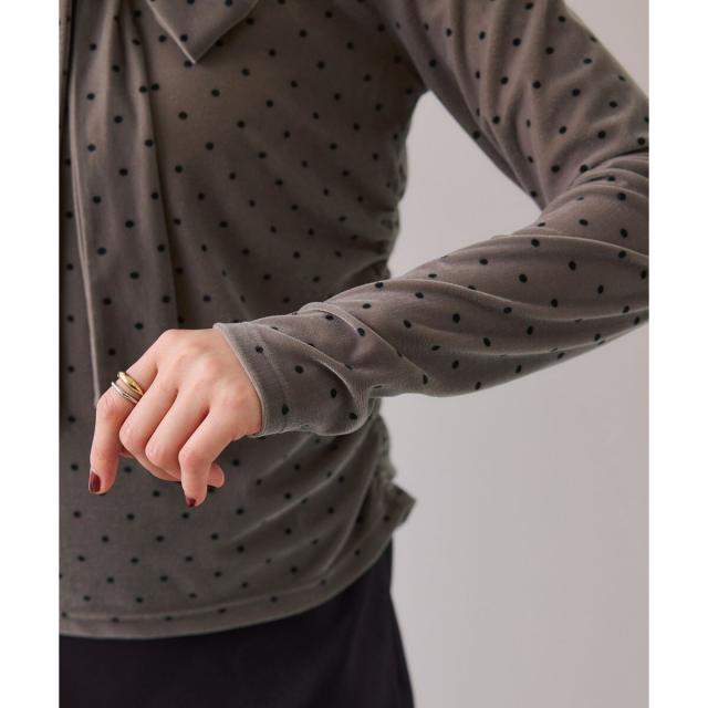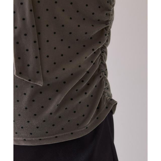 程よく身体に沿うシルエット。ドット柄とフロントリボンデザインで秋冬に着回しのきくカットソーです。アウトスタイリングでも着用できるようサイドにゴムギャザーを寄せてすっきりとしたフォルムにしました。