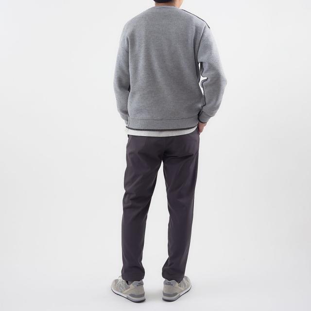 すっきりとしたスリムシルエットで、きれいめなアウターとも好相性。