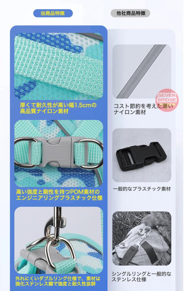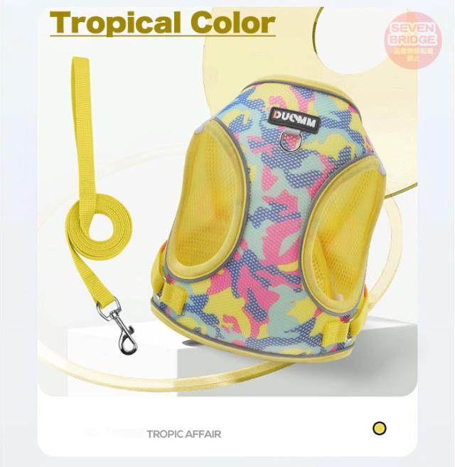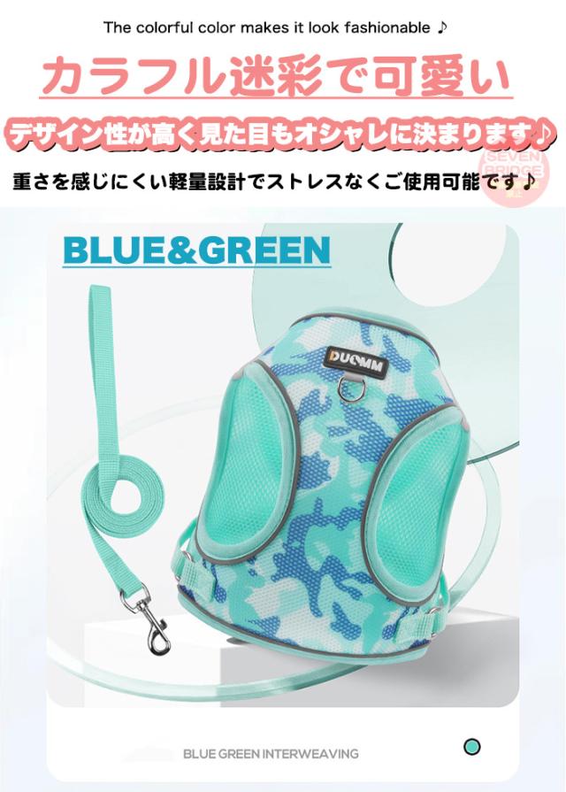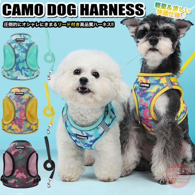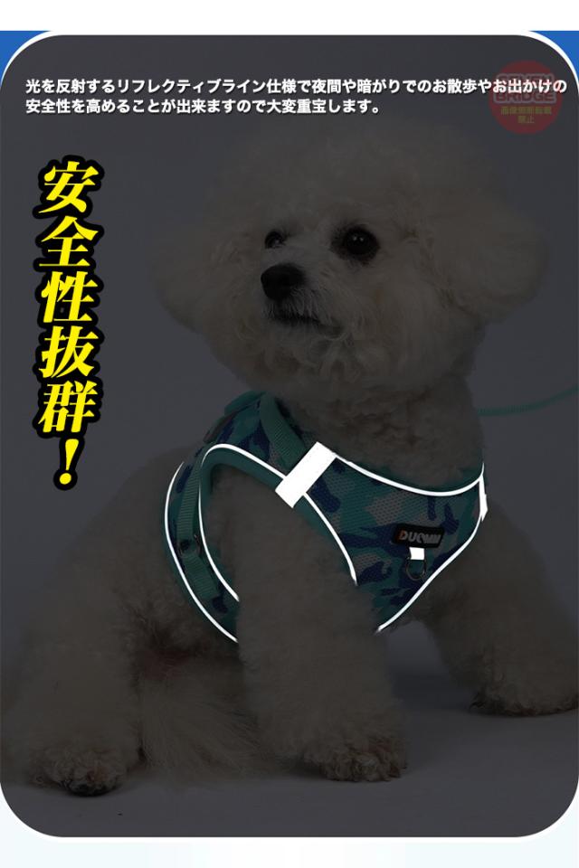 犬 猫 ハーネス リード付 迷彩 軽量 涼しい 快適 冷感 メッシュ ウェアハーネス 光反射 ペット 服 胴輪 キャット ドッグ h0629