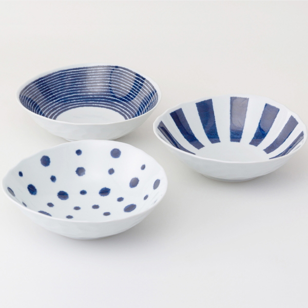 波佐見焼 藍玉 多用鉢トリオ 35277 3個、和皿、西海陶器、日本製、国産、化粧箱入、送料無料、電子レンジ、食洗器可、日常使い、朝食、ワンプレート、使いやすい