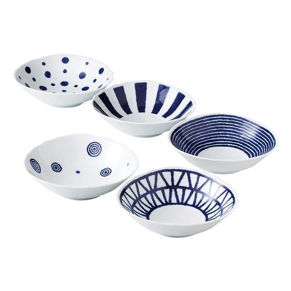 波佐見焼 藍玉 小鉢揃 198565 5個、和皿、西海陶器、日本製、国産、化粧箱入、送料無料、電子レンジ、食洗器可、トライアングル型、ボウル、煮込み料理、サラダ、毎日、テーブル