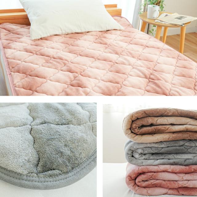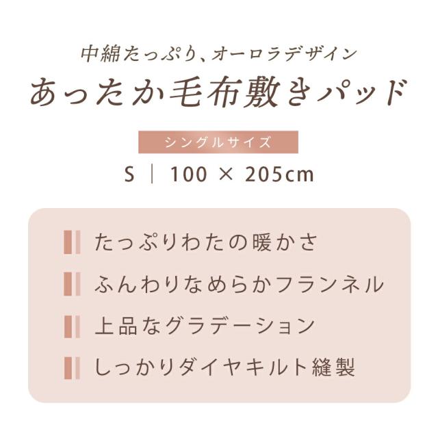 毛布敷パッド 敷きパッド シングル フランネル オーロラ敷パッド ふんわり あったか 中綿たっぷり ボリューム 毛布 冬 省エネ エコ 洗濯OK グラデーション デザイン ブラウン グレー ピンク シングル