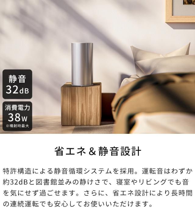 水道水からつくる純水ミストで加湿しながら、空間のウイルスを99.9%減少させる「moya Craft」。薬剤を一切使わず、0.05〜0.5μmのウルトラマイクロミストが空気を心地よく潤します。静音設計と省エネ性能を備え、赤ちゃんやペットのいる空間にも安心。Bluetooth対応アプリで自動運転やスケジュール設定も自在に。研ぎ澄まされたステンレスのフォルムがインテリアに調和し、日常の空気を、美しく整えます。