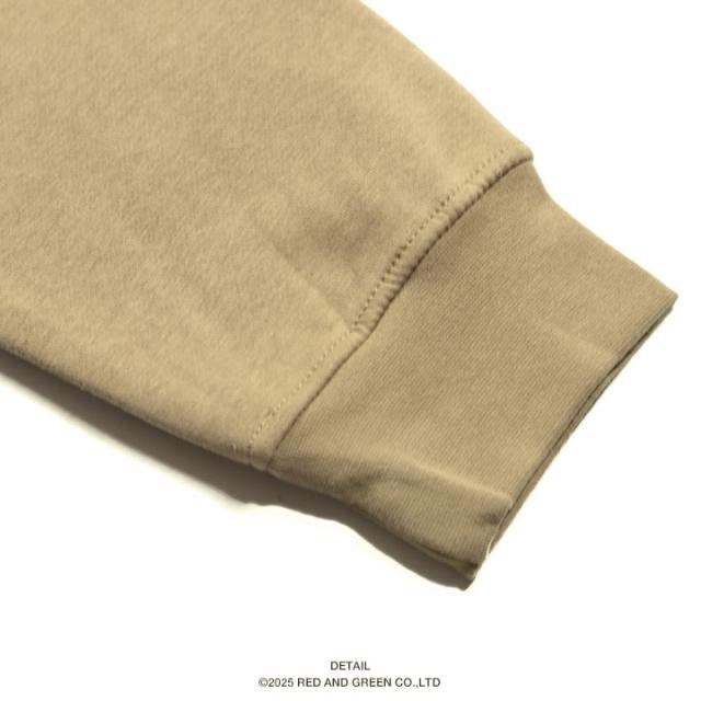 生地は、柔らかく肌触りが良い快適な着心地のフレンチテリーコットン素材を使用。適度な厚みがあり、使いやすいミドルウェイトスウェット。着ぶくれせず、シャツやアウターとの重ね着にも適しています。