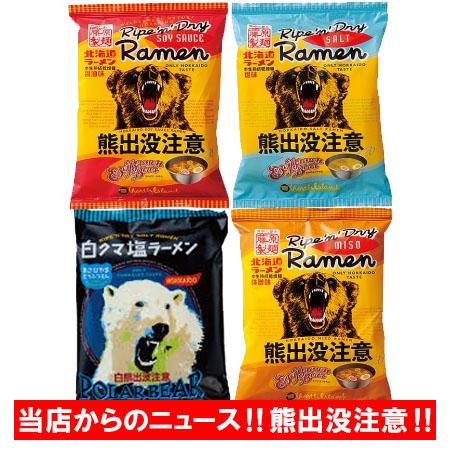 北海道 熊出没注意 ラーメン 醤油 / 味噌 / 塩 / 白熊塩ラーメン 送料無料 熊出没 ラーメン 4種 袋麺 毎日テレビで放送されています 熊には注意しましょう 乾麺 麺類 ラーメン