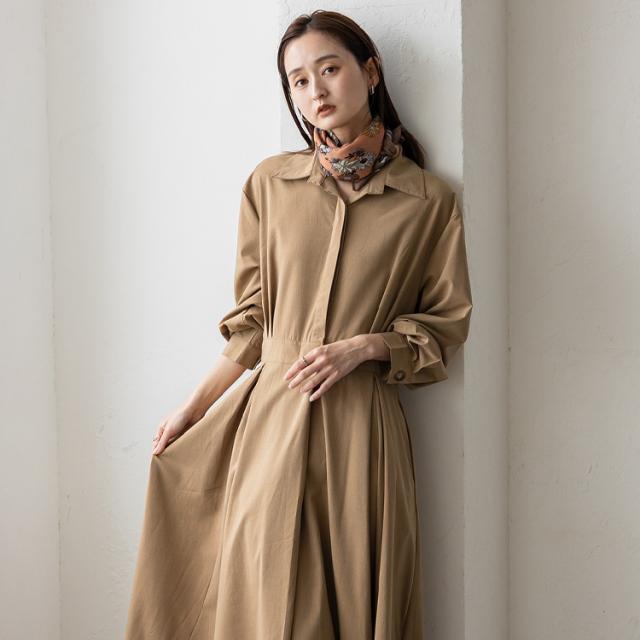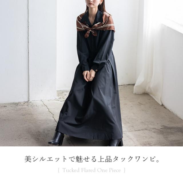 上品さと着心地の良さを兼ね備えた、きれいめタックフレアーワンピース。