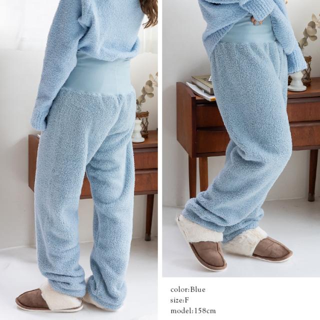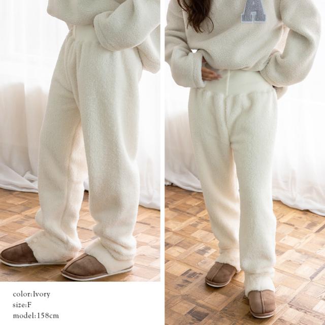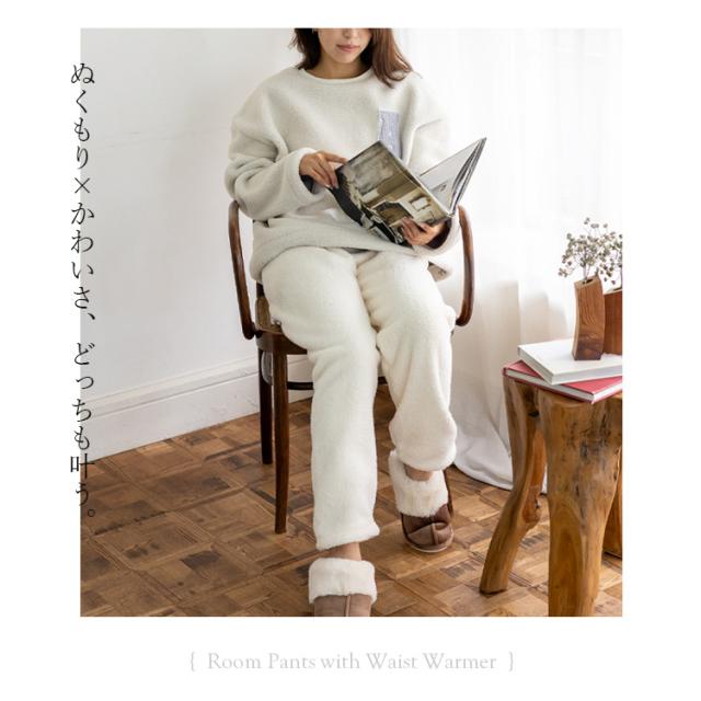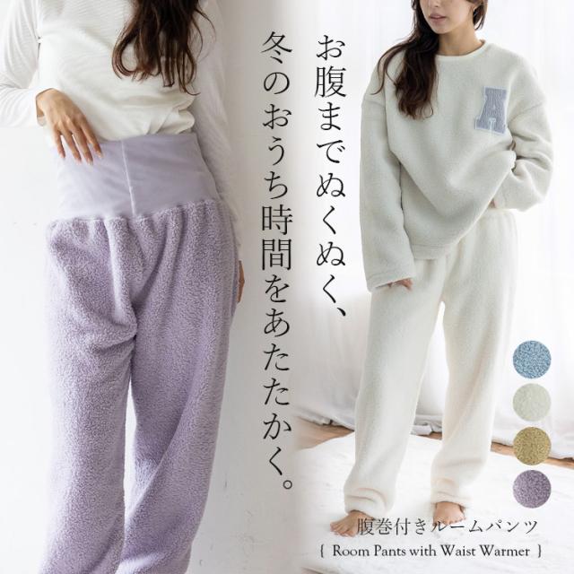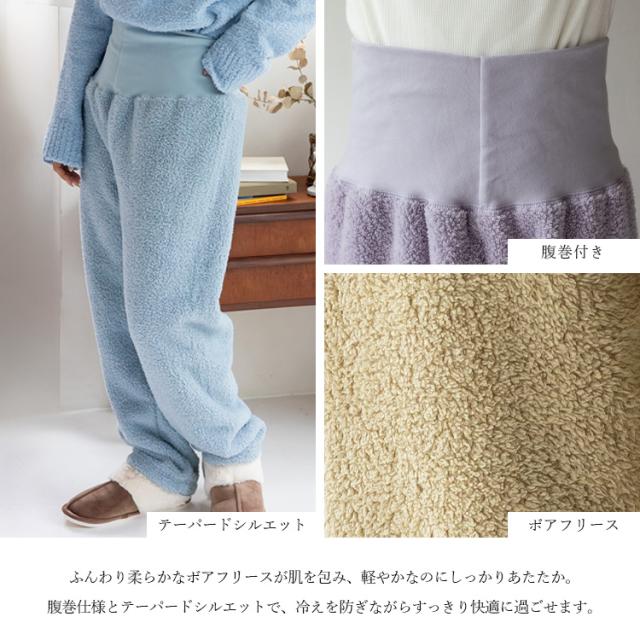 腹巻き付きパジャマ レディース 腹巻きパジャマ 腹巻 もこもこ ルームウェア 冬 ボア フリース ボトムス ストレート 起毛 イージーパンツ ルームパンツ ロングパンツ ゆったり ナイトウェア 部屋着 おしゃれ 可愛い あったか 防寒 温活 vkkc-0560