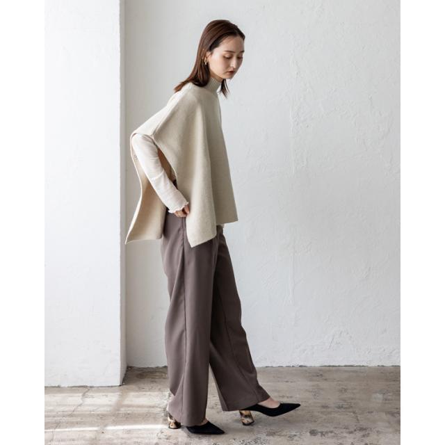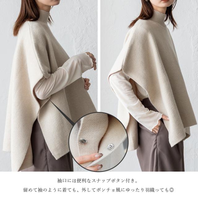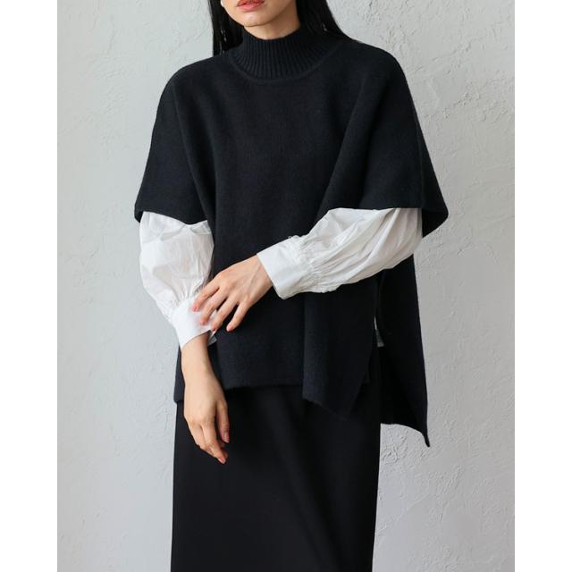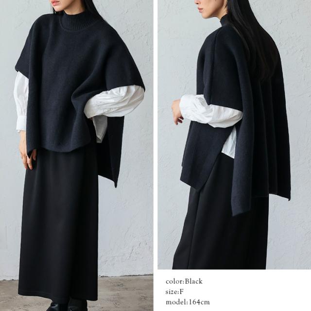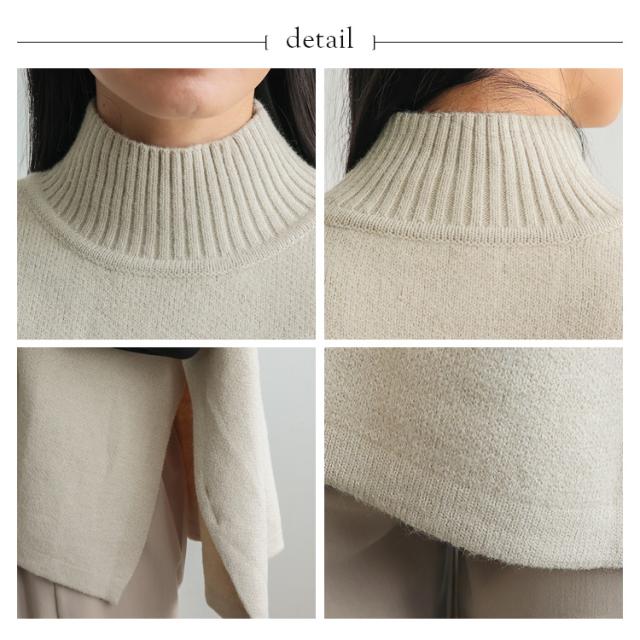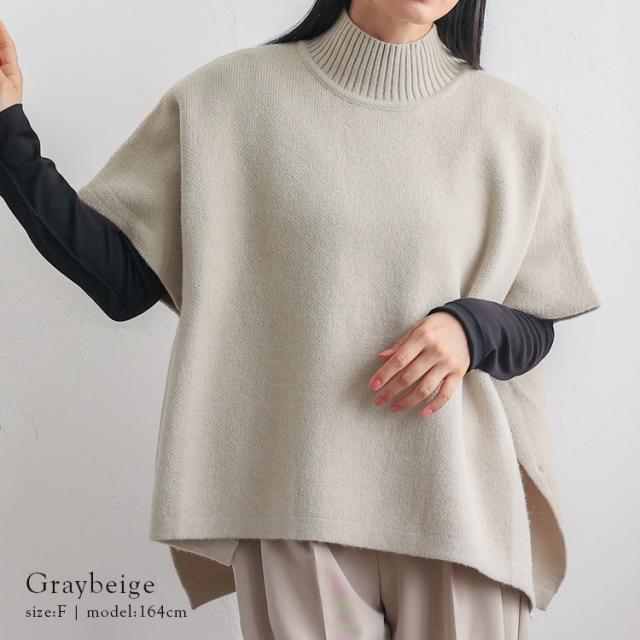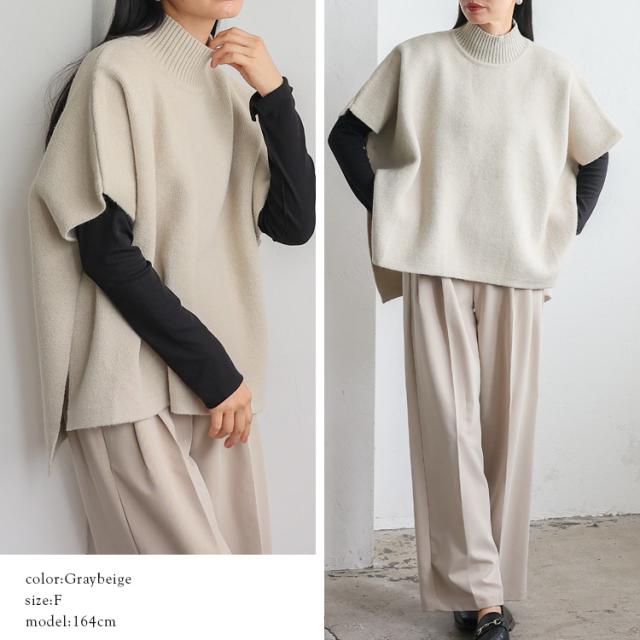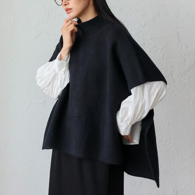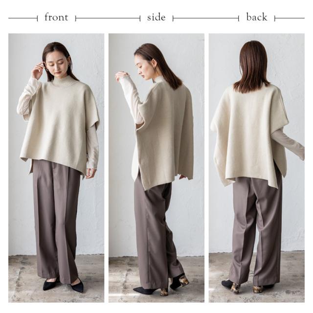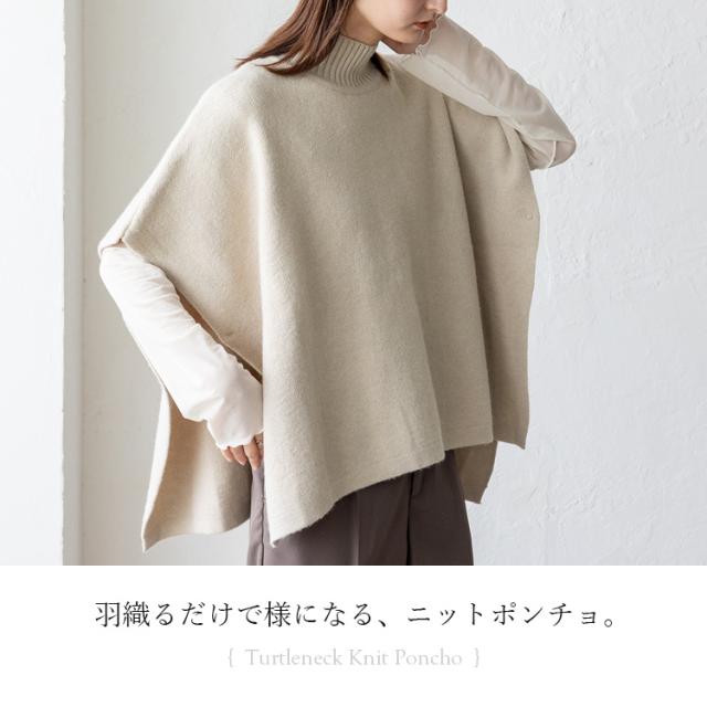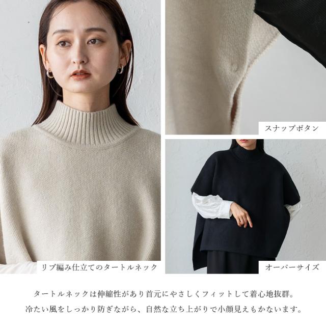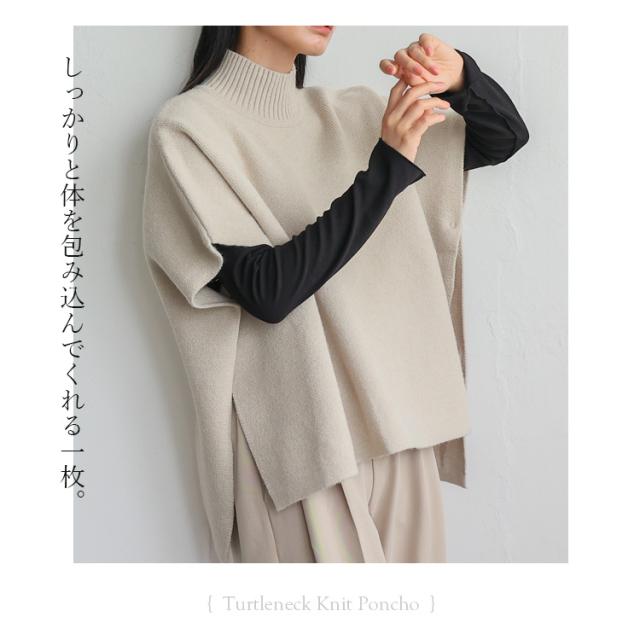 ニットポンチョ レディース タートルネック ハイネック ニットベスト ミドル丈 サイドスリット レイヤード チュニック 重ね着 ナチュラル オーバーサイズ 大きいサイズ フリーサイズ 柔らか 袖なし 前後差ヘム 体型カバー vkkc-0535