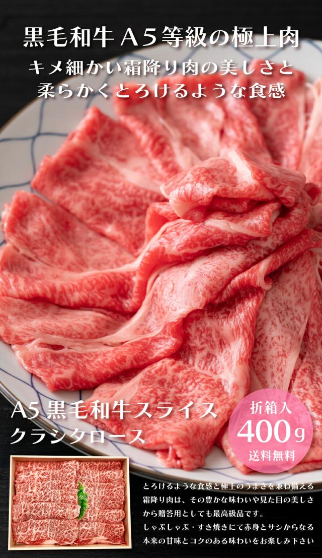 【極上A5黒毛和牛】霜降りクラシタロース400g ギフトBOX入|とろける旨みの贅沢スライス 牛肉 和牛 すき焼き 焼肉 A5 ギフト 贈答