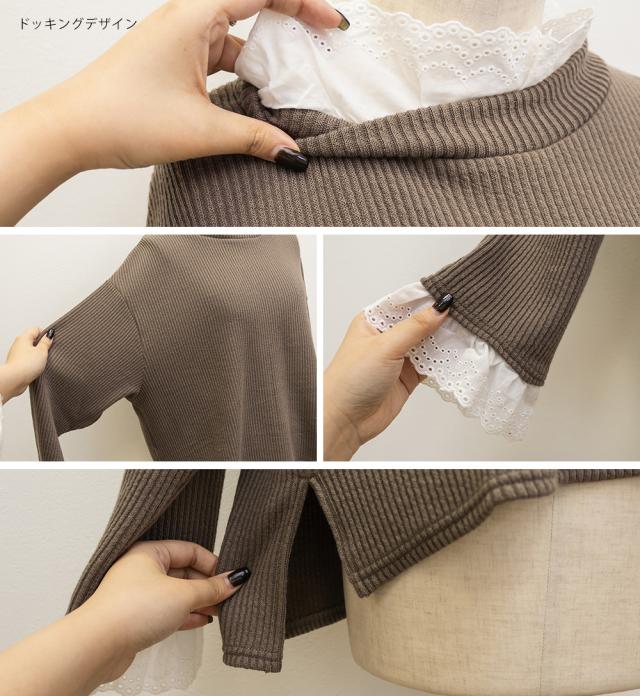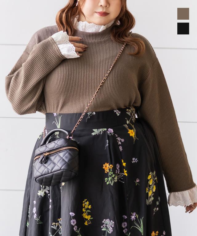 大きいサイズ/レディース/3L/4L/レースドッキングリブニットソー