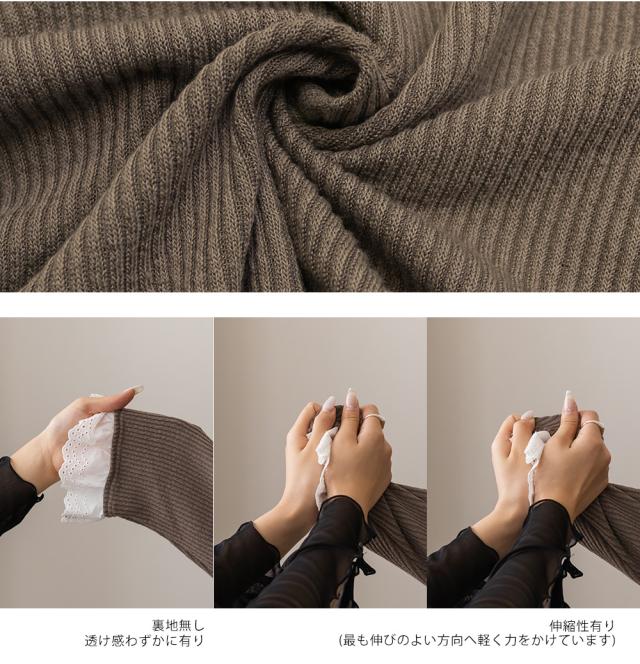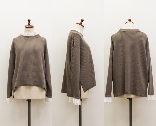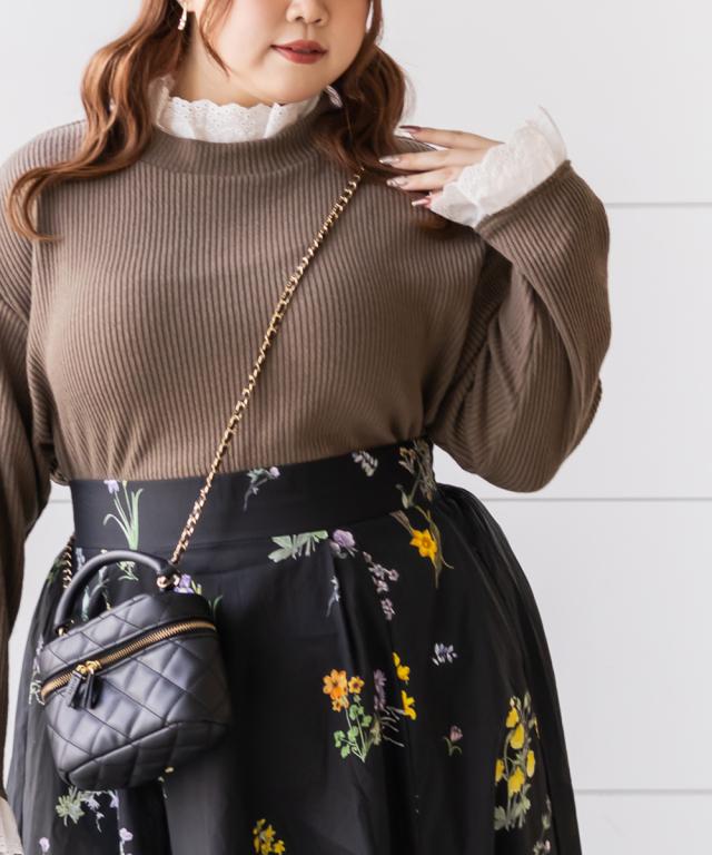 | 3Lサイズを着用してちょうどいい着心地でした。秋冬らしい雰囲気になれる生地だけど、薄手なので、ごわつかず重ね着もしやすいです!ネックや袖口からチラッと見えるレースが可愛くてトップスとしても重ね着してもお洒落な印象です♪リブの縦ラインがあるので華奢見えも叶います!ジャケットのインナーにしてもワンピのインナーにしても可愛いプチハイネックで、たくさん着回しの効く1枚です! |
