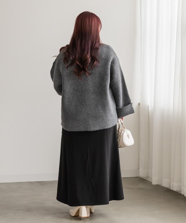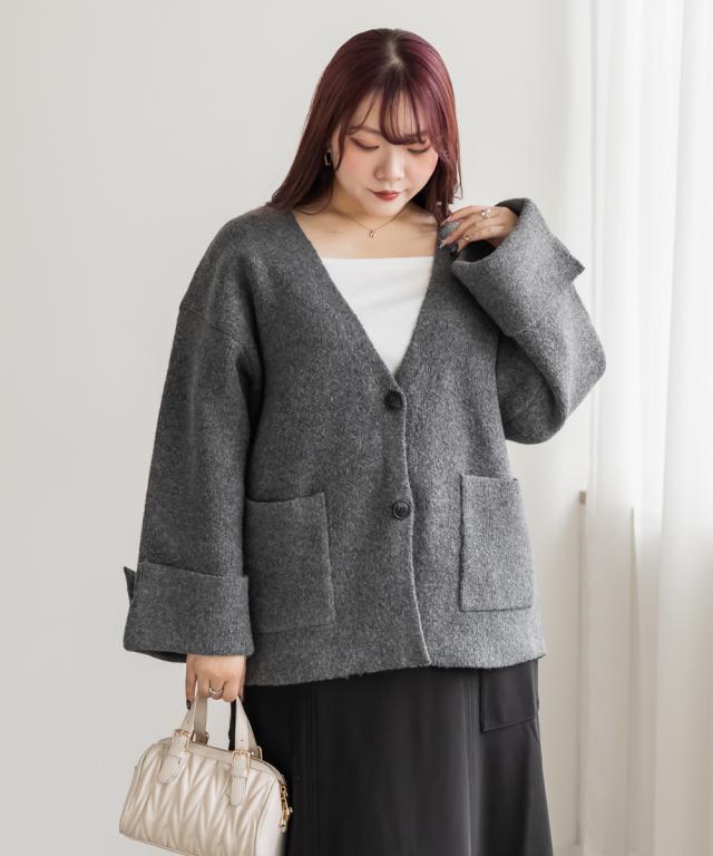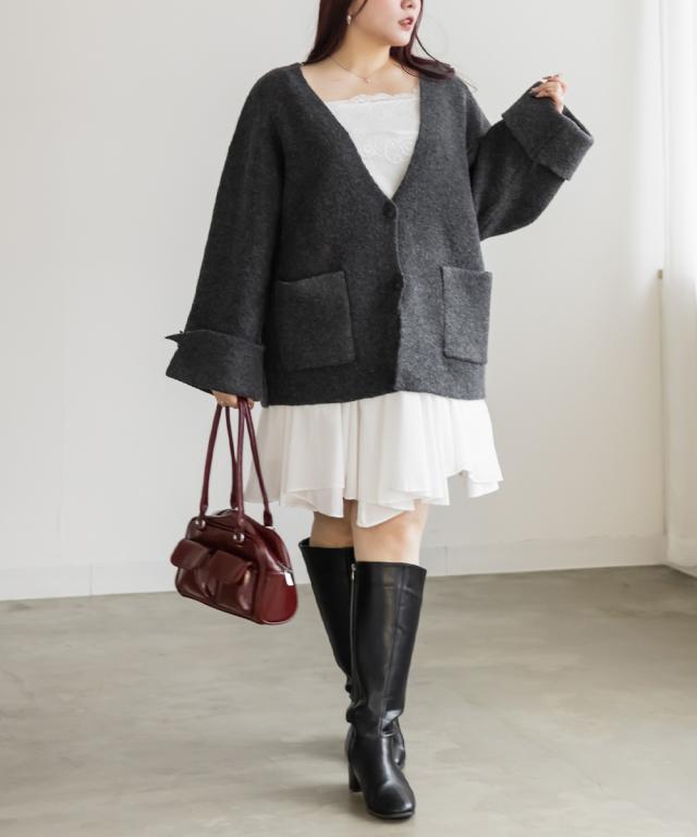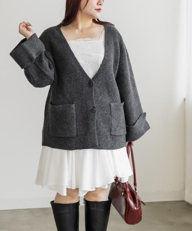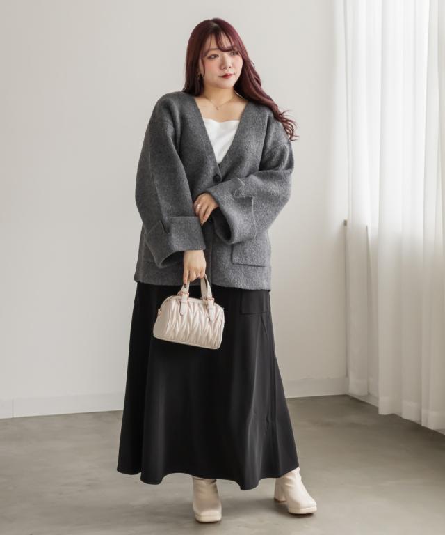 | 3Lを着て丁度いいサイズでした。ゆったりしたシルエットなので余裕のある着心地で着ることが出来ました。羽織るだけでコーディネートが決まるニットカーディガンです◎厚手のニットなのでアウターのような感覚に近い着こなしがお勧めです♪ボタンを開けても閉めても可愛く着こなせて、深いVネックがすっきりした印象で小顔効果をプラスしてくれます! |