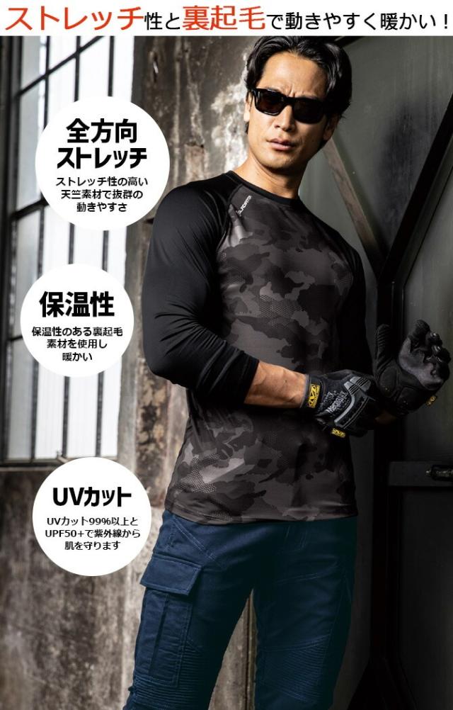 GLADIATOR(グラディエーター)のホットコンプレッション「ウォームパワーサポート長袖」です。 心地よくフィットする全方向ストレッチの裏起毛素材が熱を蓄え、優れた保温力と動きやすさを両立しています。 縫い目がフラットで肌への当たりが少ないフラットシーマ縫製で、気になるニオイを軽減する消臭テープ、紫外線から肌を守るUVカット機能も装備しており、ハードな環境下でも暖かさをキープし、快適な着心地を実現しています。 ワークやアウトドアなど冬の様々なシーンのインナーウアェアとして大活躍します。 |