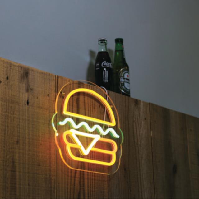 ネオニーサインライトは光を放たなくても存在感のあるインテリアとして空間を彩り、昼と夜で違った表情を楽しめます。カラフルでポップなデザインがまるでアートのように空間に溶け込みます。