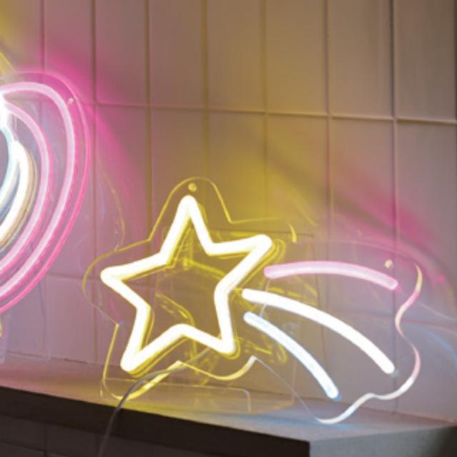 ネオニーサインライトの「シューティングスター」デザインです。カラフルな発色がインテリアを可愛らしく彩ります。
