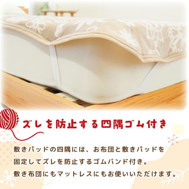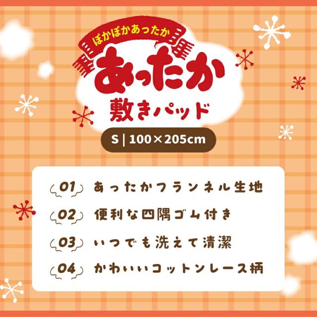 [keyword | コットンレース柄 フランネル生地 冬用 保温性 やわらか素材 なめらかタッチ フィット感 四隅ゴム付き ズレ防止 敷きパッド 洗濯機OK 丸洗いOK 清潔 軽量 肌触りふわふわ ベッドパッド あったか寝具 ナチュラルデザイン]