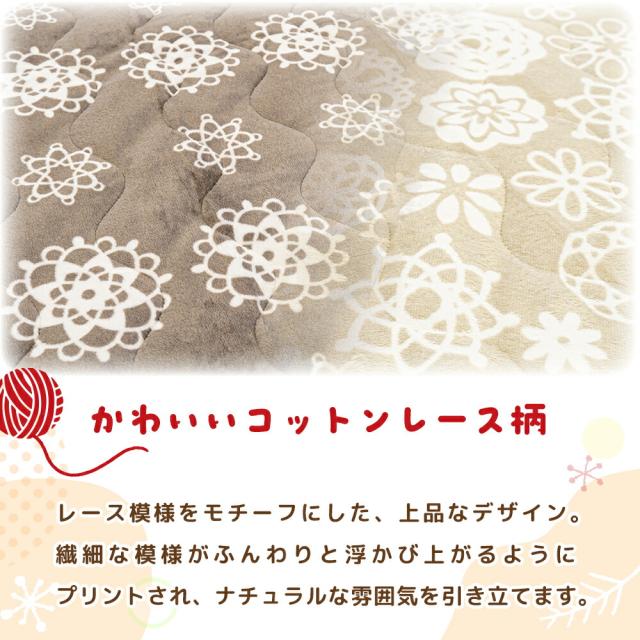 【2枚セット】あったか敷パッド シングル コットンレース柄 ふわふわ 洗える フランネル 毛布敷パッド あったか プリント柄 あったか 毛布 敷きパッド ブラウン ベージュ ふんわり 冬 節電 100×205cm